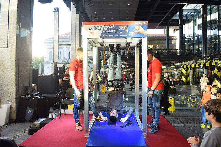 Veliku pažnju posetioca privukao je i Loctite kutak, gde su svi zainteresovani imali priliku da se uvere u kvalitet i snagu Loctite lepka kroz zabavne aktivnosti. Najhrabriji među njima su, baš kao na reklami, bili zalepljeni naopačke na plafon. Takođe, posetioci su dobili veoma zanimljive poklone, kao i uzorke Loctite Super Bond lepka.